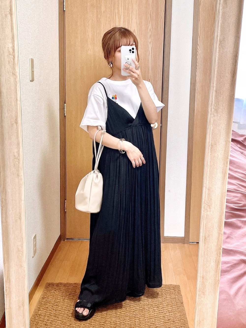 真似しやすいモノトーン⸜❤︎⸝ キャミワンピースはプリーツデザインなら 細身え度が増すし周りとかぶりにくい( ◜◡◝ ) Yurutto.とゆうブランドさんのロゴTシャツが 可愛くて最近気に入ってます✿ - - - - - - - - - - - - - - - - ▽肩幅をカバーする華奢見えコーデの提案 TikTok / Instagram ≫ pooo___24 ( アンダーバーは _ _ _ 3本です ) 低身長 / プチプラ / 淡色 / ゆるコーデ オススメコスメも不定期更新中✨ いいね、お気に入り、フォルダイン、 フォローもありがとうございます ◡̎✧