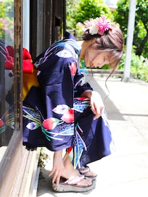 ぽーの浴衣「選べる浴衣3点セット utatane和歌山染工C」を使ったコーディネート