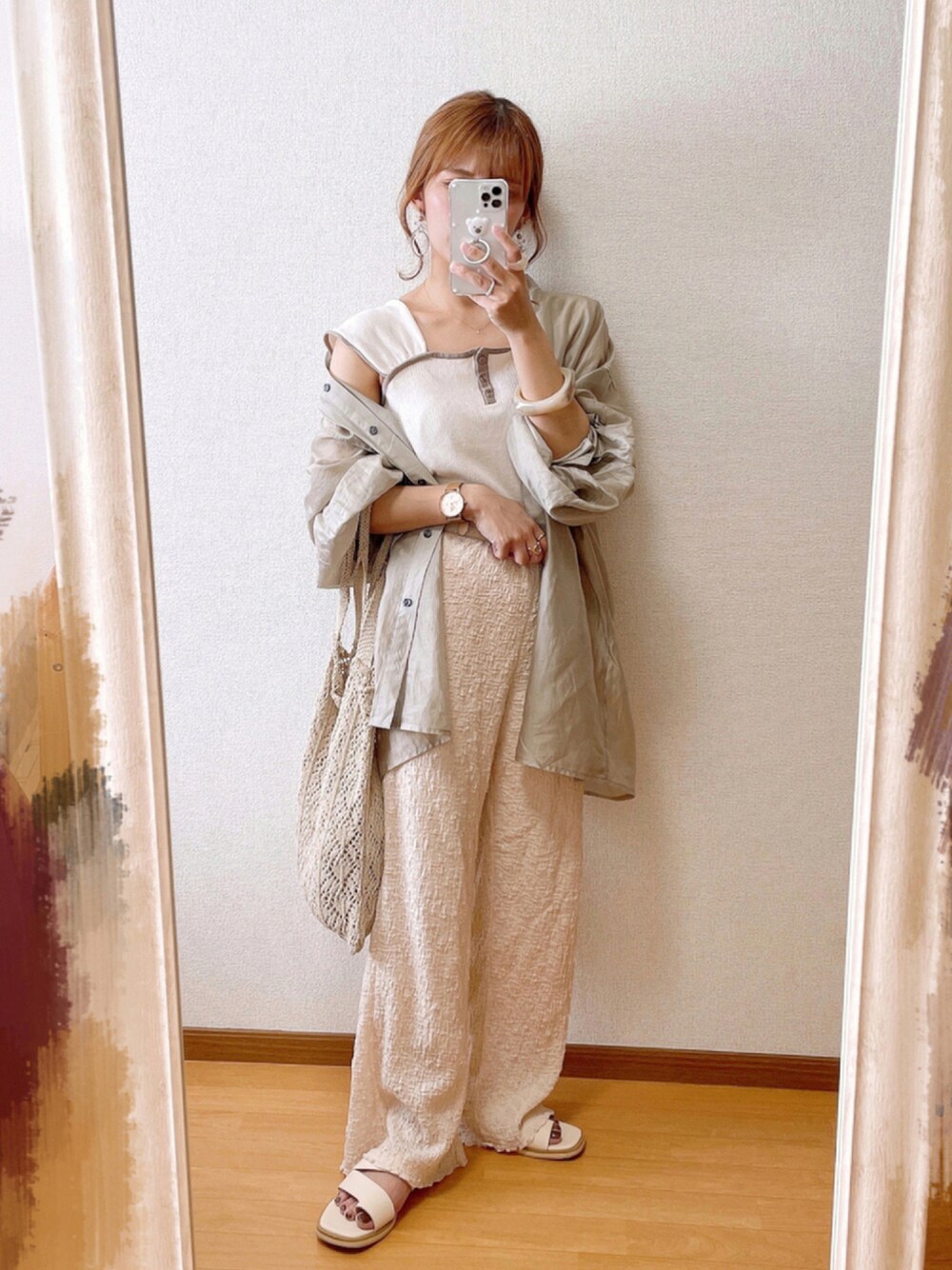 プチプラ淡色コーデ 🧺⸝⸝ 日焼けしたくないから真夏も長袖来てる ⚘⠜ シアーシャツなら暑苦しく見えにくい🤞🏻 - - - - - - - - - - - - - - - - ▽肩幅をカバーする華奢見えコーデの提案 TikTok / Instagram ≫ pooo___24 ( アンダーバーは _ _ _ 3本です ) 低身長 / プチプラ / 淡色 / ゆるコーデ オススメコスメも不定期更新中✨ いいね、お気に入り、フォルダイン、 フォローもありがとうございます ◡̎✧