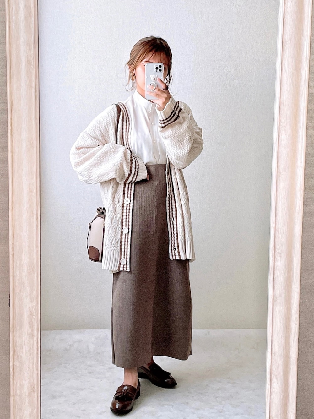 淡色カジュアル𓂃𓋪◌ コーデのアクセントになるライン入りカーディガン 開けたり閉めたりインしてみたり かわいいし着回ししやすくて最高〜✌🏻️ タイトスカートとローファー合わせなら カジュアルすぎない通勤に着ていけるコーデに🕊 このコーデのアイテム全部お気に入りすぎるから インスタに着回し載せます〜 ࣪⊹ - - - - - - - - - - - - - - - - ▽肩幅をカバーする華奢見えコーデの提案 TikTok / Instagram ≫ pooo___24 ( アンダーバーは _ _ _ 3本です ) 低身長 / 淡色カジュアル ガーリー ❤︎︎ ˊ˗ 不定期でコスメとカフェ投稿 𓏸𓍯 いいね、お気に入り、フォルダイン、 フォローもありがとうございます ◡̎✧