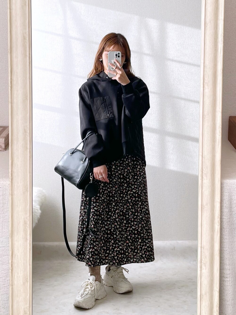 ぽーのパーカー「キルティング切替パーカー【セットアップ対応】」を使ったコーディネート