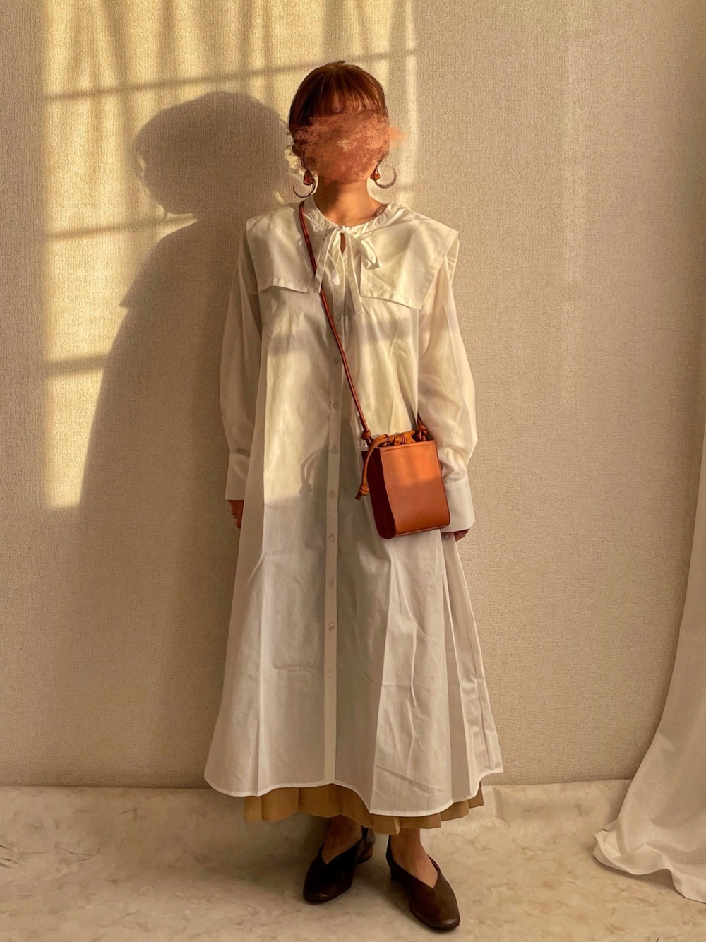 ぽーのシャツワンピース「リボン付セーラーカラーワンピース」を使ったコーディネート