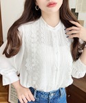 ぽーのシャツ/ブラウス「【累計販売枚数4万枚突破!】シフォンジョーゼットスタンドカラーフロントレースシャツ」を使ったコーディネート