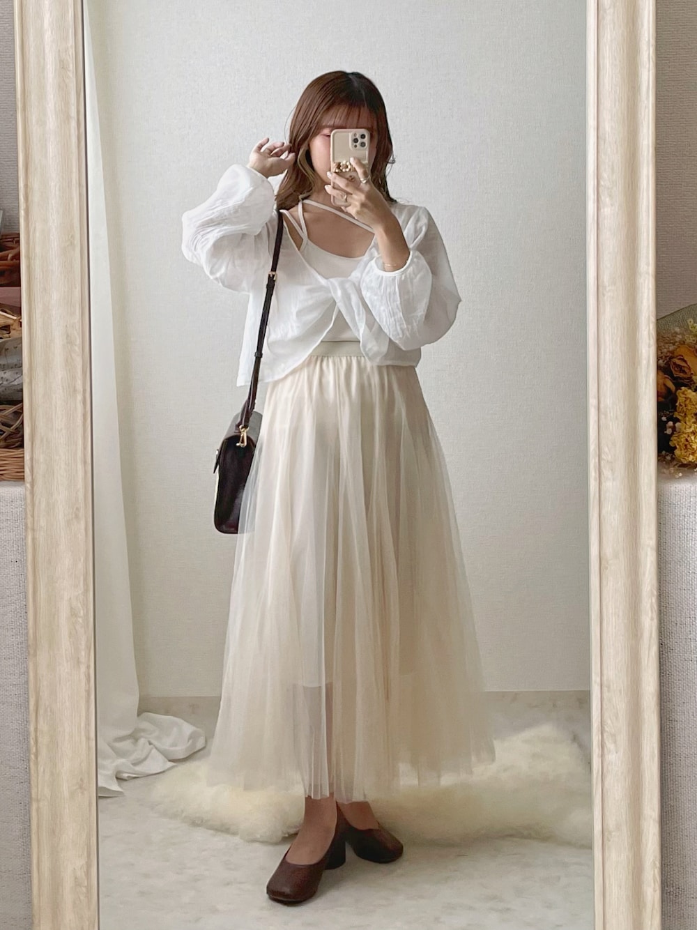 ぽーのキャミソール「【apres jour clair】カップ付きバッククロスキャミソール【ZOZOTOWN限定アイテム】」を使ったコーディネート