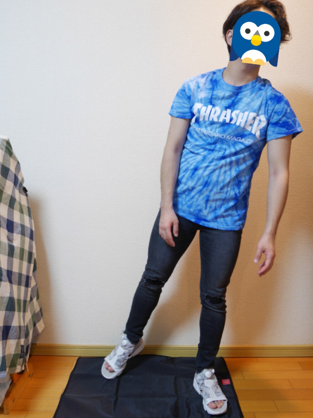 シンプルコーデ ~タイダイを添えて~ シンプルの中にグッとくるタイダイですね! タイダイは大好きです🐶 THRASHERのタイダイって綺麗で好きなんです。 ダメージジーンズ欲しいなーと、いろんなお店を回って試着しまくった結果! AZULのレディースのダメージスキニージーンズに決まりました🕷 足元はReebokのサンダルです🌴