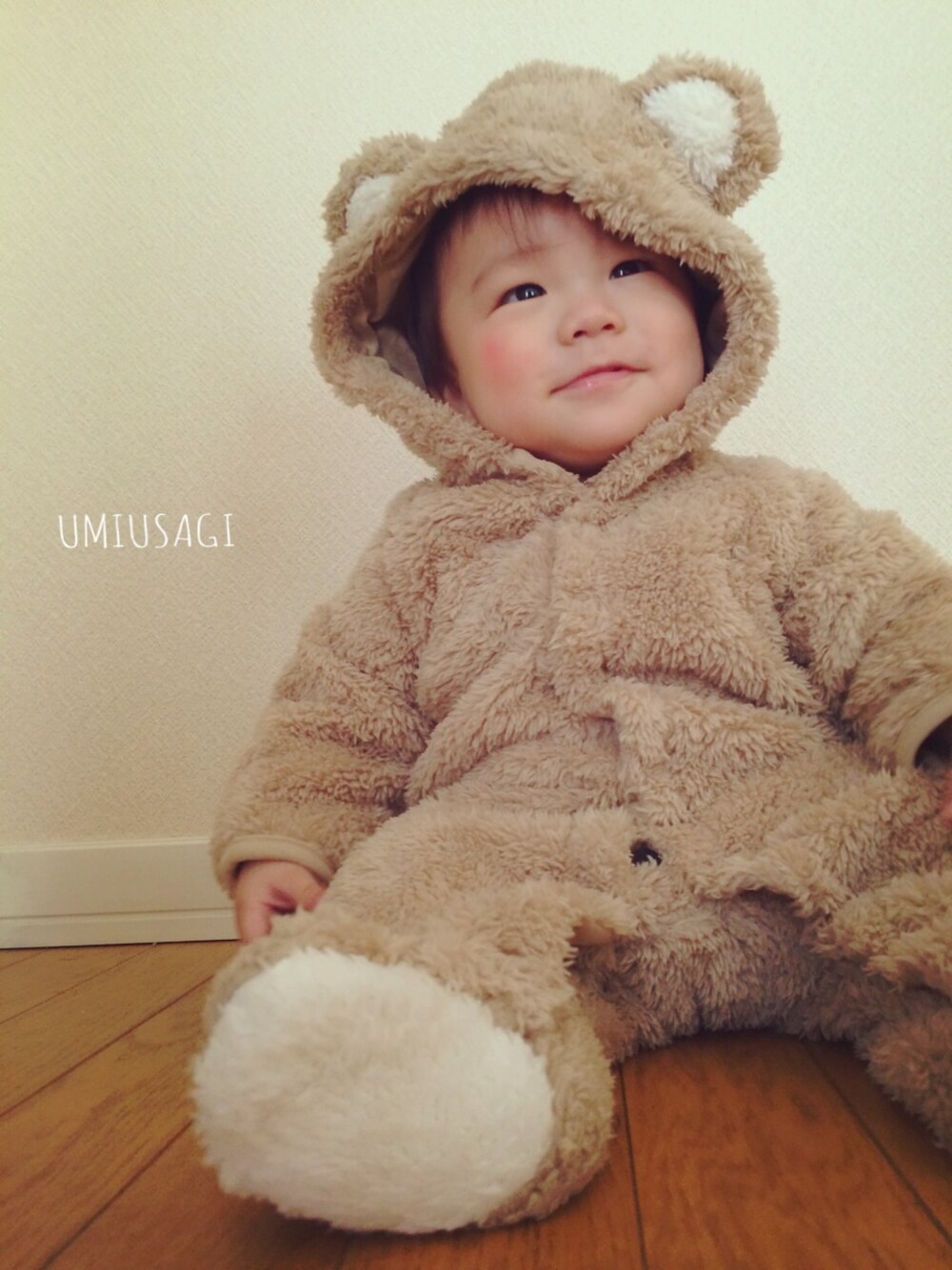 ブラウン系のカバーオールを着用したキッズの秋コーディネートの1枚目の写真
