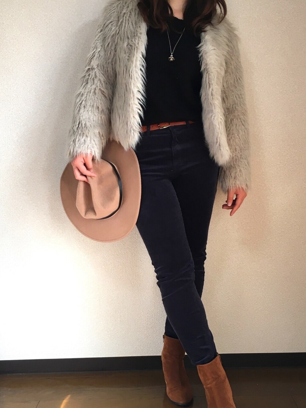 私はガタイがいいので、ファージャケット着ると綺麗めとは程遠いイカつい感じになってしまいますが、、もはや開き直って好きなように着てます(^O^) 肉厚なジャケットなので防寒バッチリです◎ 黒のニットはgreen label relaxingさんので購入してから数年経ちますが、シルエットが崩れることなくて本当に優秀な一枚です。これからも大事に着たいです♪