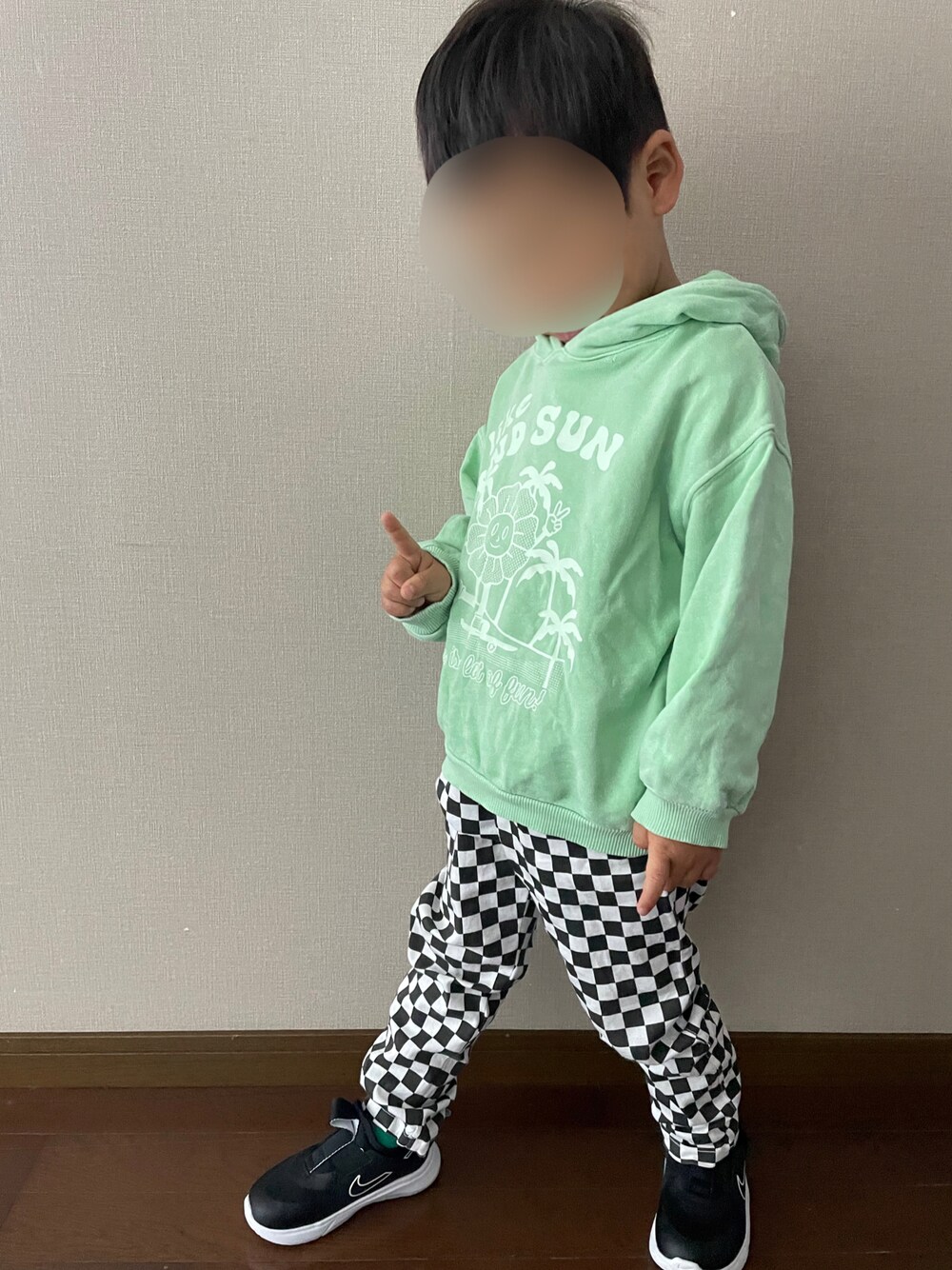 安定の公園コーデ😊 息子は外でも上着は着ないです🥶 見てるこっちが寒いよ〜 おにゅーのNIKEのスニーカーで👟