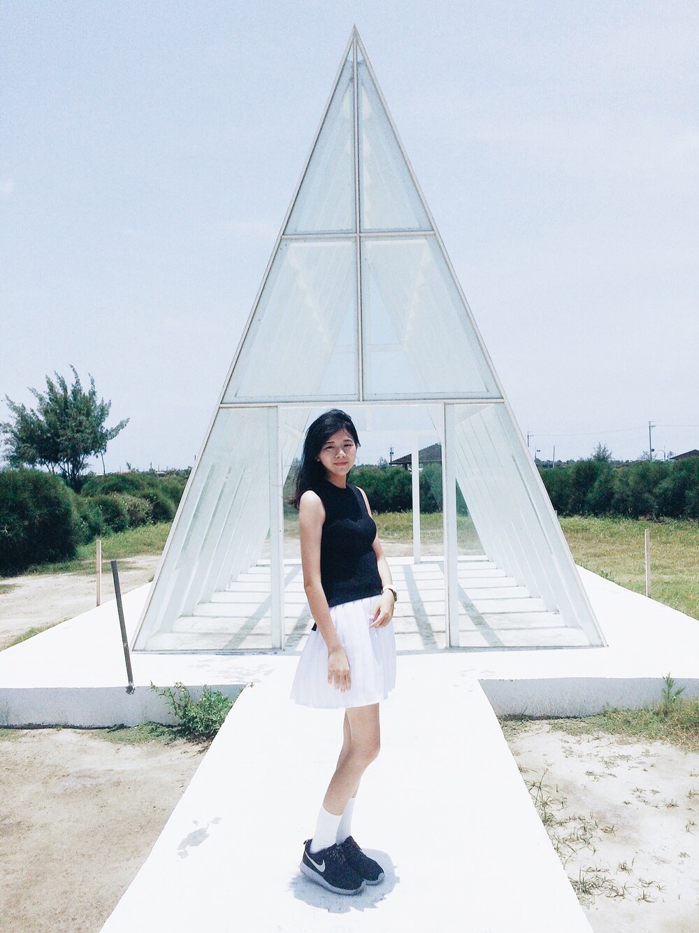 ホワイト系のスカートを着用したレディースの夏コーディネートの1枚目の写真