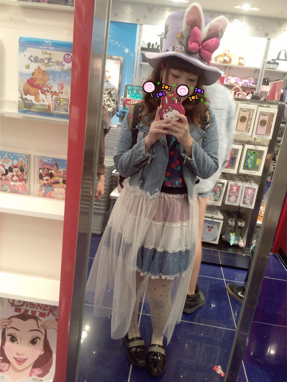 ディズニーストアにて。 『違和感ないよ』とのこと。 かぶりものが好きですぐかぶりたくなる、、、。