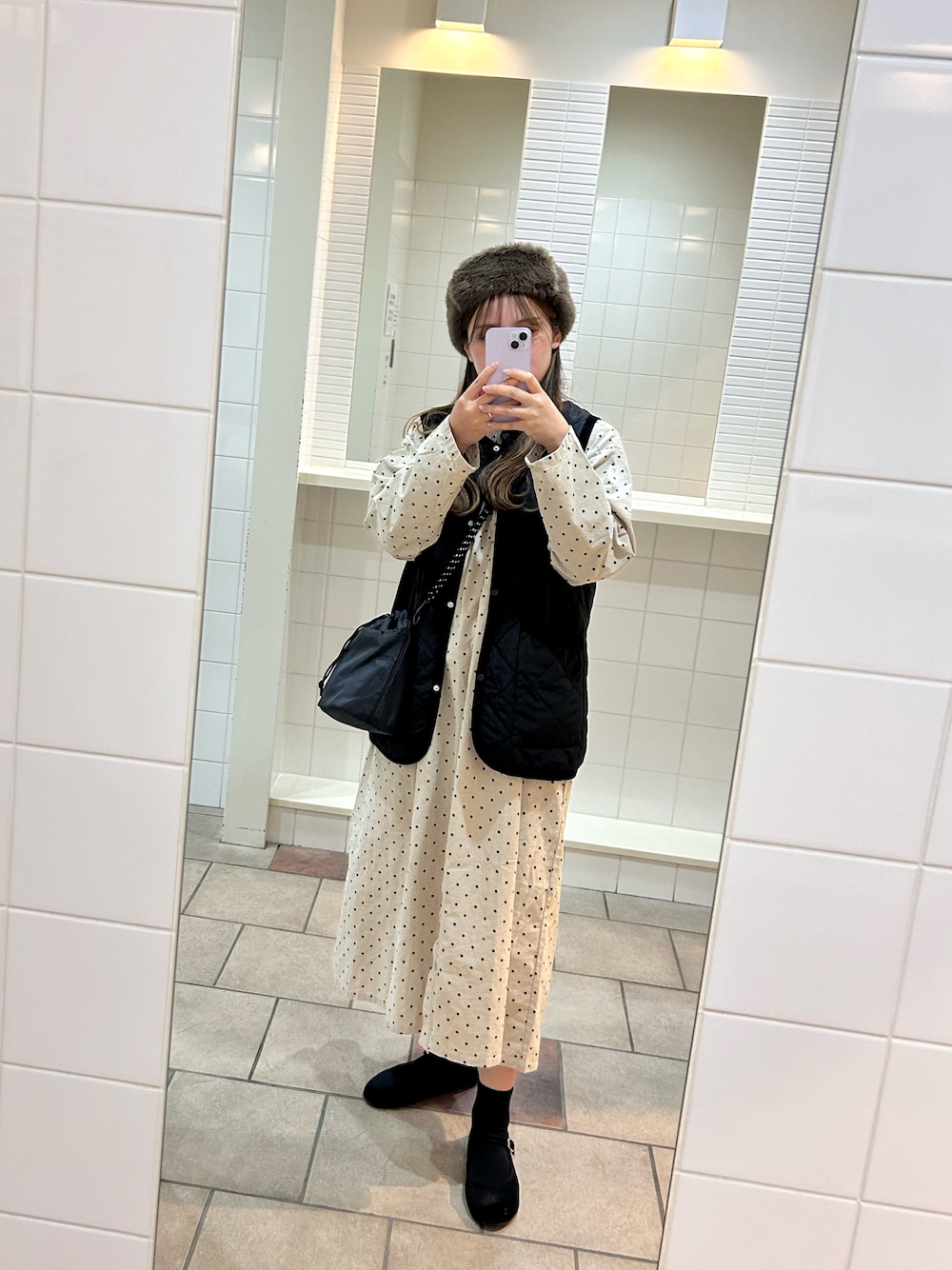 しろまる🐶のワンピース「柄アソートシャーリングネックワンピース」を使ったコーディネート