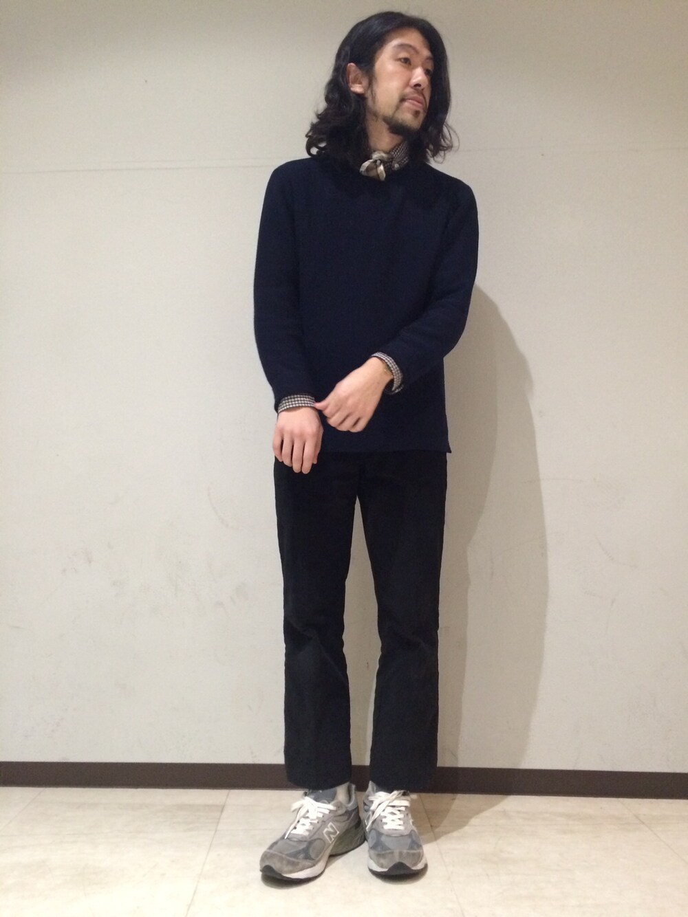 ニット nano•universe シャツ STEVEN ALAN パンツ A.P.C. スニーカー new balance ネクタイ nano•universe 靴下 black fleece by brooks brothers