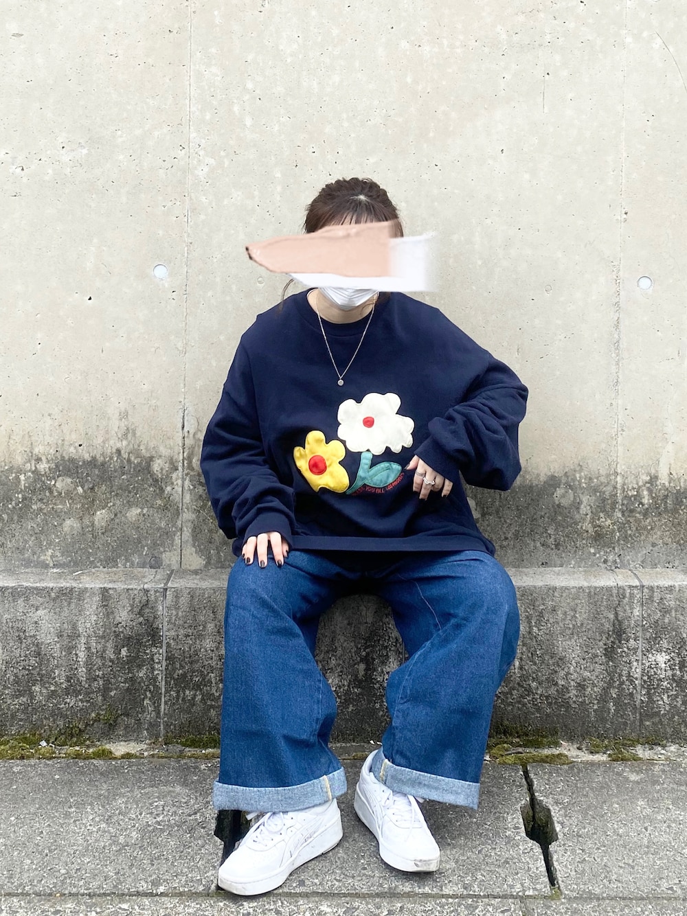 𝗸𝗼𝗺𝗮のスウェット「【BLESS YOU/ブレスユー】センターフラワー刺繍クルースウェット」を使ったコーディネート