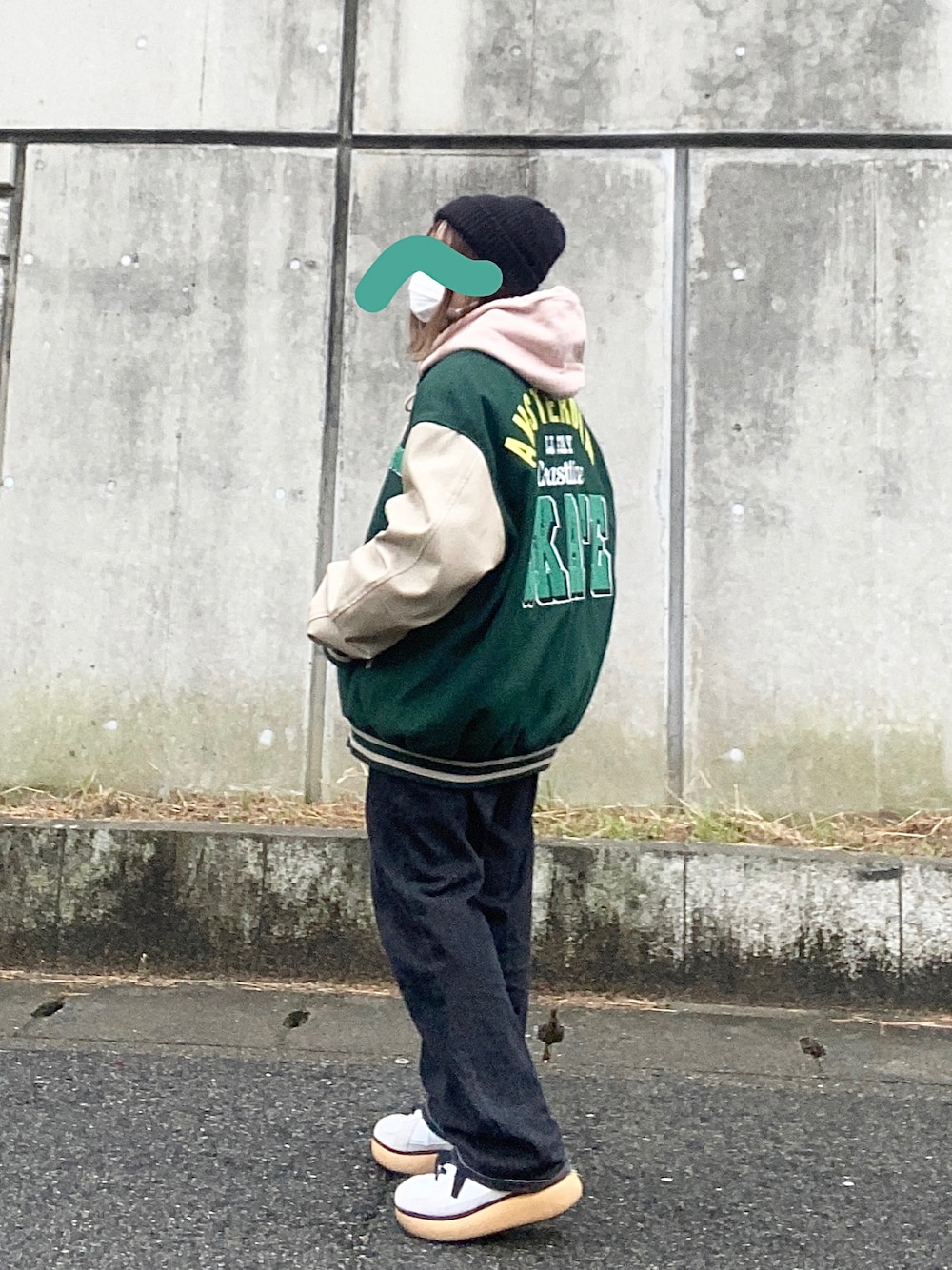 𝗸𝗼𝗺𝗮のスタジャン「WEGO/メルトンワッペンスタジャン」を使ったコーディネート