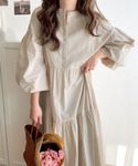 KAHOのワンピース「ふんわりモテワンピ。コットン100%バックリボンティアードワンピース」を使ったコーディネート