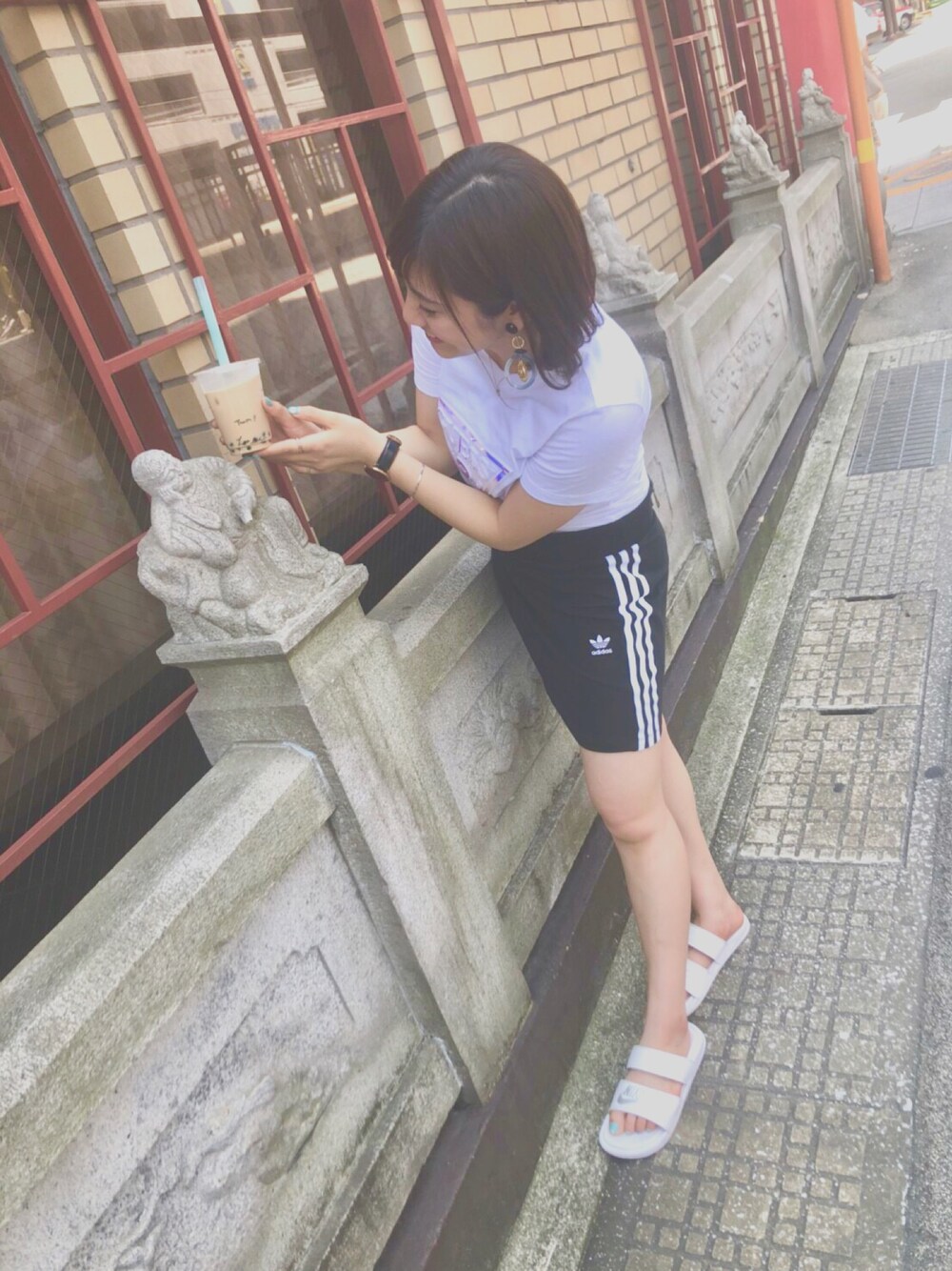 ブランドがケンカしとる、、笑 夏になるとほぼサンダル〜😆 GUESSのTシャツお気に入り🌟