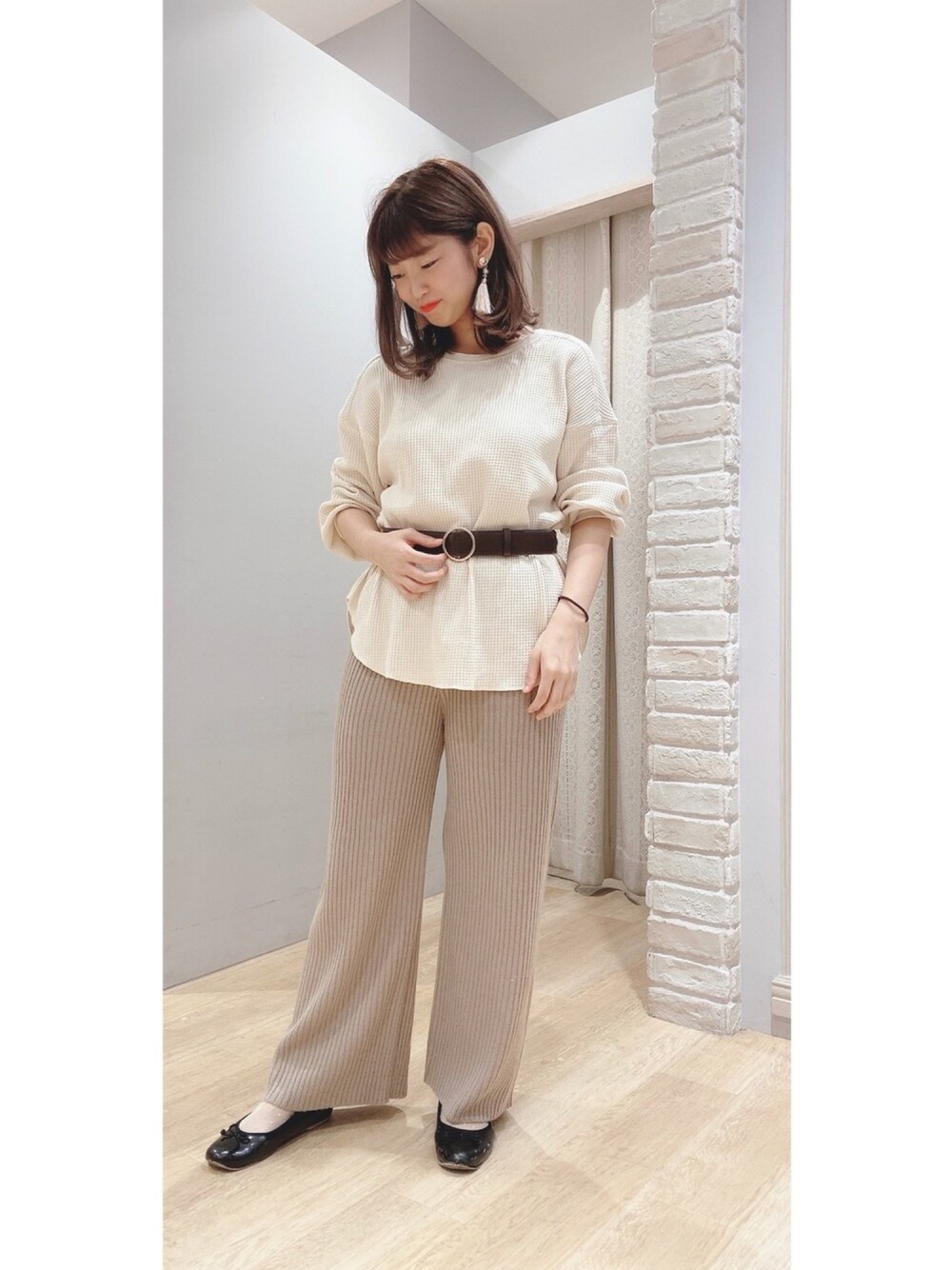 見ていただいてありがとうございます❤︎ トップスはわたしの大好きなワッフル素材で 前後ろ両方着られる万能アイテムです☺︎ パンツもニット素材でシルエットを拾わない こなれた着こなしに変わります😽✳︎ 髪を久しぶりにばっさり切りまして イメチェンだ〜〜〜!✂︎✂︎