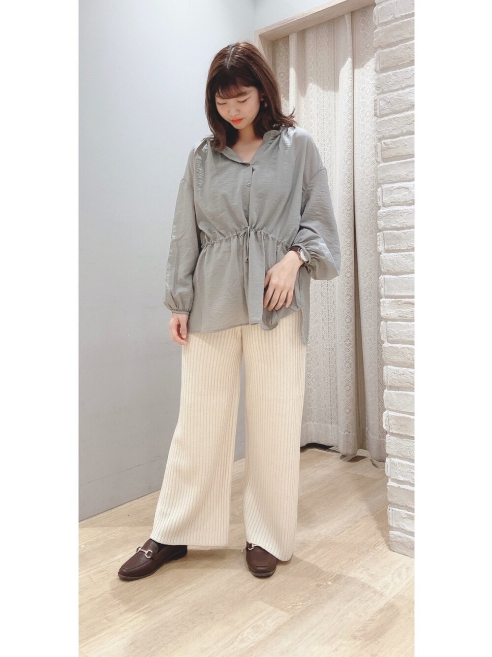 おはようございます☀ 今日はあまり普段着ない グリーン混じりの淡い色合いのミント色🐳 ウエストゴムになっていてて 楽チンです◎ ロングスカートと合わせて ガーリーに着こなすのもイマドキ🧡