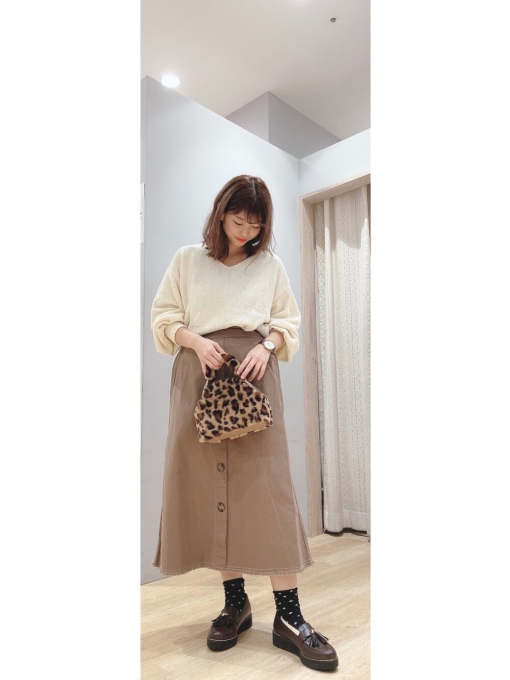 ゆりっぺのトートバッグ「ハーフムーンファーバッグ*」を使ったコーディネート