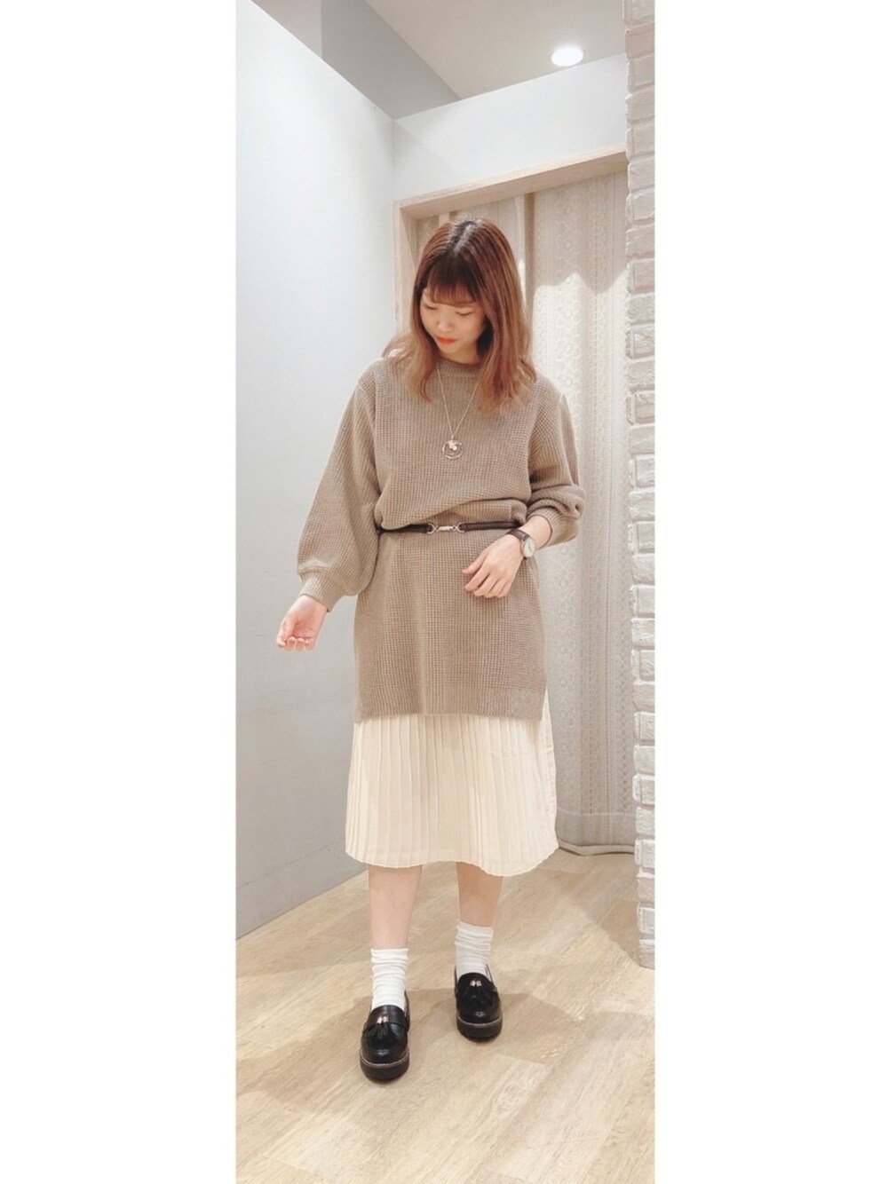 ゆりっぺのネックレス「パールボリュームロングネックレス」を使ったコーディネート