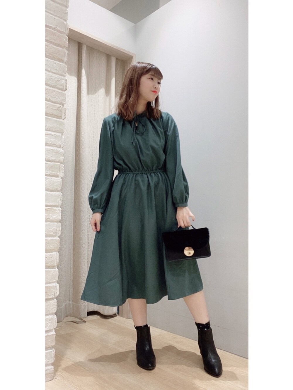 1枚で可愛い!完成するコーデ☺︎❤︎ ウエストがきゅっとなっていて メリハリがつきます👍💕 落ち着いた上品なダークグリーンも イチ押しです😌