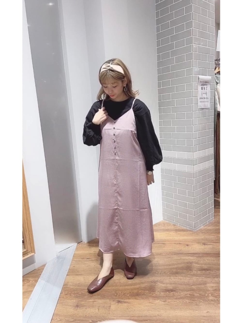 インナー次第で、夏〜冬でも着られるキャミワンピース👗 今回はボリューム袖で、ガーリーさをプラス✨