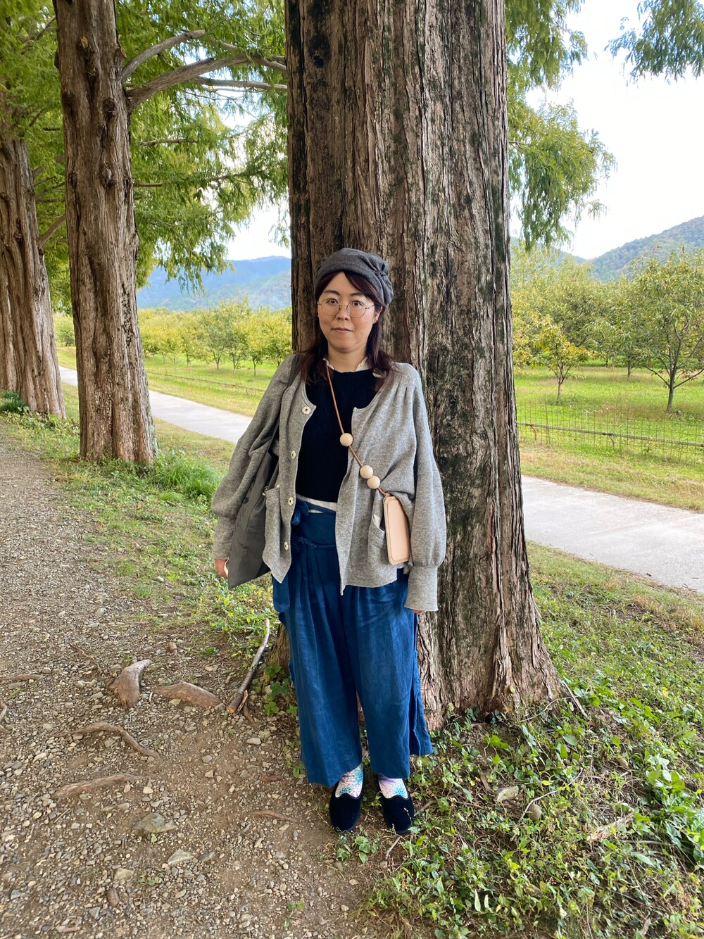 今日のコーデ 投票行ってお昼の後そのまま、 気分でマキノピックランドへ🍎🍇🍐 メタセコイア並木🌲🌲の傍で いつもと変わらない格好で撮りました お気に入りだけれど暫く 着用していなかった TOWAVASEのブルーのパンツ 自分で直せたのでまた履きました ソックスはこの前、フィンレイソン展にて 一目惚れして購入したもの💘 ルールさんのニットのベストはちょっと早くて暑かったです🥵 今日も見てくださって ありがとうございます😊🙇♀️