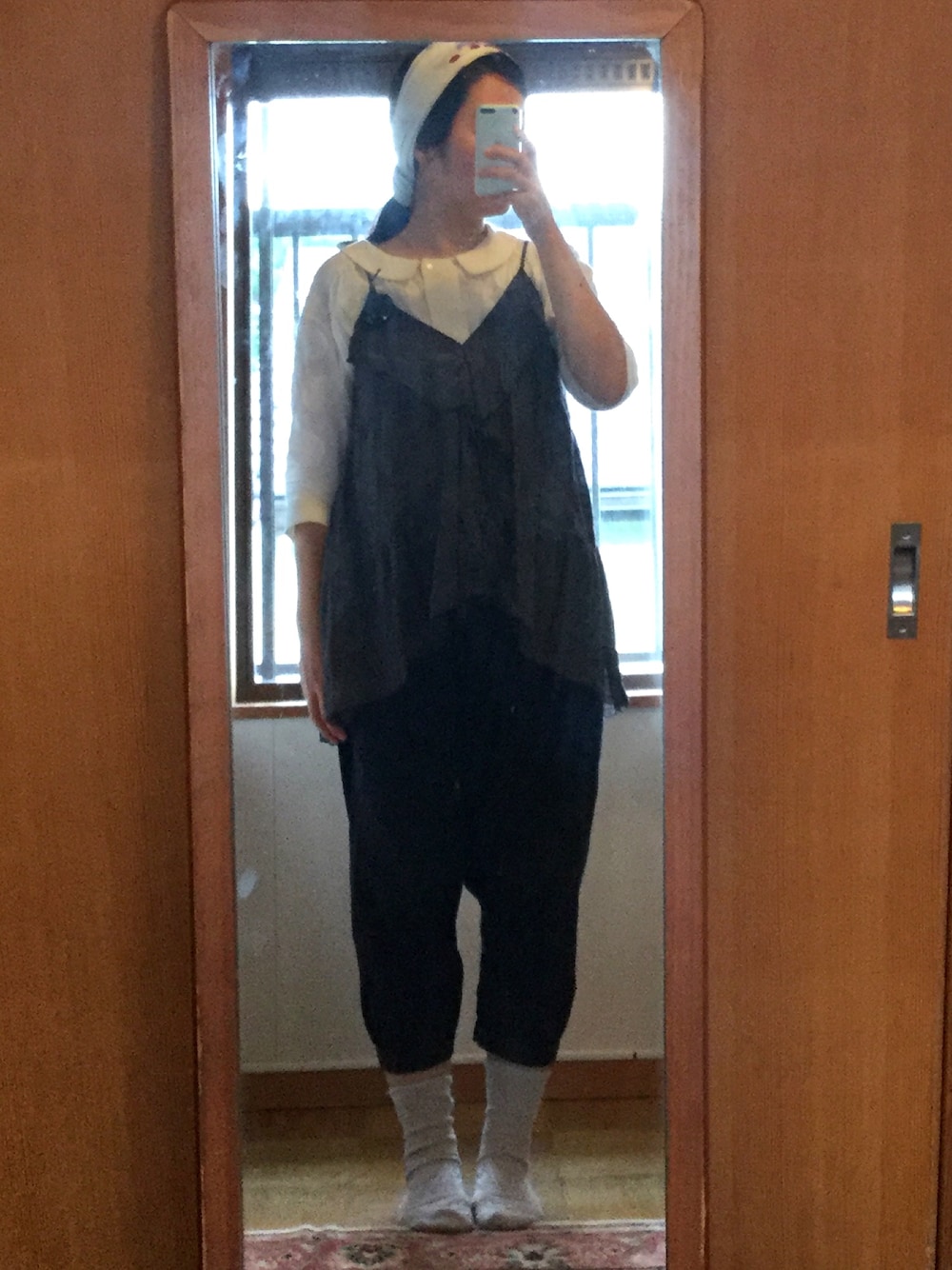 こんにちは。 お久しぶりの投稿です。 こちらは撮りためていたものです。 ヴセットのベストにミフレルのサルエルパンツを合わせたスタイル。 楽器屋にギターの弦を買いに行ったので、ロックなスパンコールのコサージュを付けています。 心持ちロッカー。 サルエルパンツは綿ならではのくたっとしすぎない素材感が気に入っています。