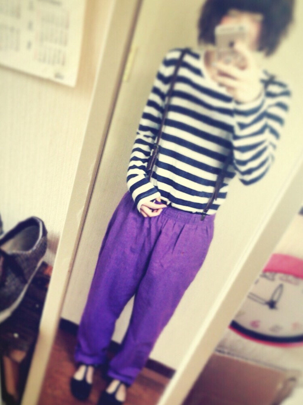 とても 久しぶり な 投稿 です 紫色 の パンツ はいたら 親に 欲求不満 かと 言われた 不愉快🙅🏻(笑) かわいい ん だけどなー、、、 ボーダーシャツ すき サスペンスダー すき いま の 気温 すき