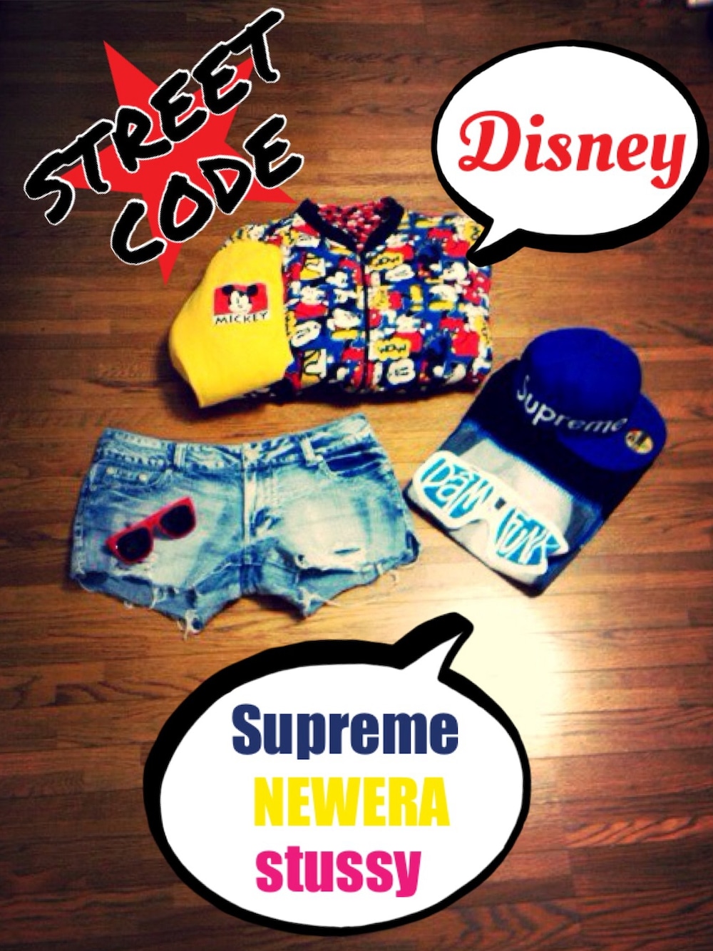 ストリートコーデ🏀💫 ディズニースタジャン 古着屋さん リバーシブルになってます(*^^*) キャップ Supreme×NEWERA Tシャツ stussy