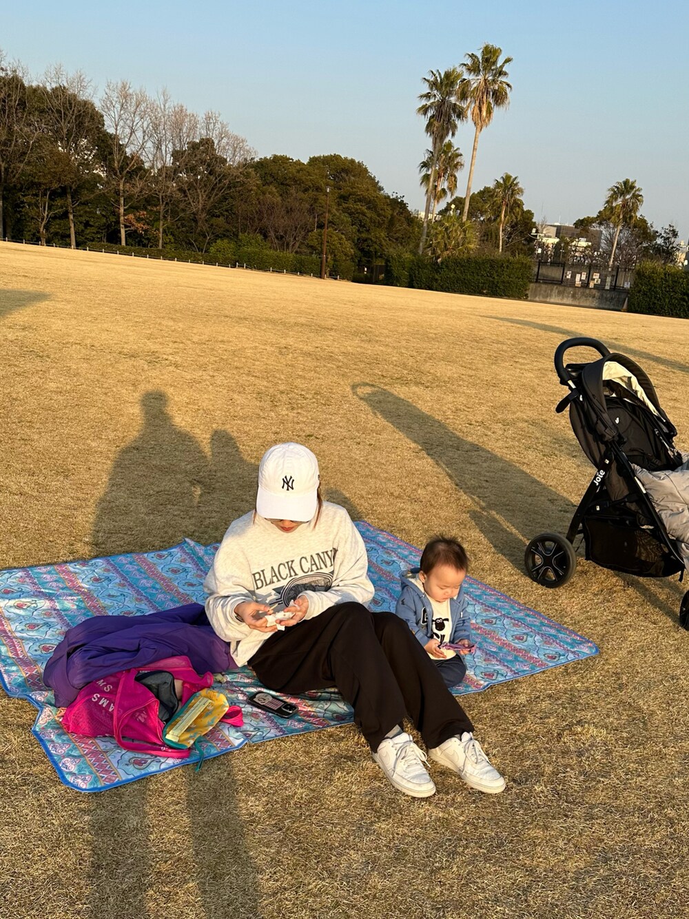 可愛い上に大容量いける、 子連れに優しいカラフルバッグお気に入り🛍️ スウェットは古着です