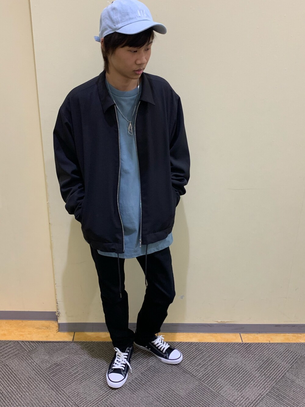 こんばんは! 春コーデ🌸🐝 今日のコーディネートはキレイめです! 黒統一の中に水色をちょこっと可愛い系のコーデです! これから春なので明るい色がいいかなと思います🙂