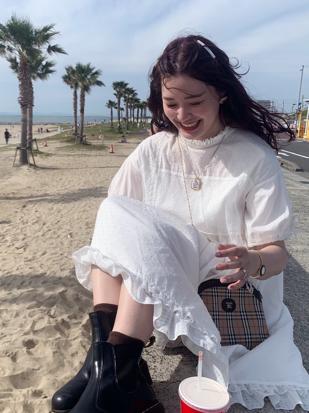 bagと腕時計はどちらもヴィンテージ🦩 可愛らしいワンピースにゴツめのマーチンを合わせるのが好き🩰