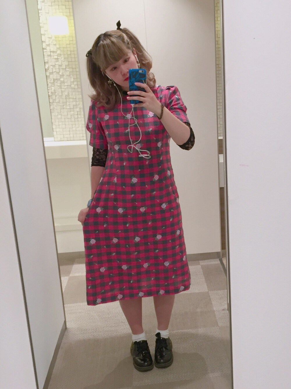 今日はバイト🍩🍨🍦🍰☕ アウターは休憩室に置いてきた~ そしてバイトの時はいつもこの靴履いてるなあ このワンピースお花全部刺繍なんだ🌷🌸🌹🌺🌻🌼
