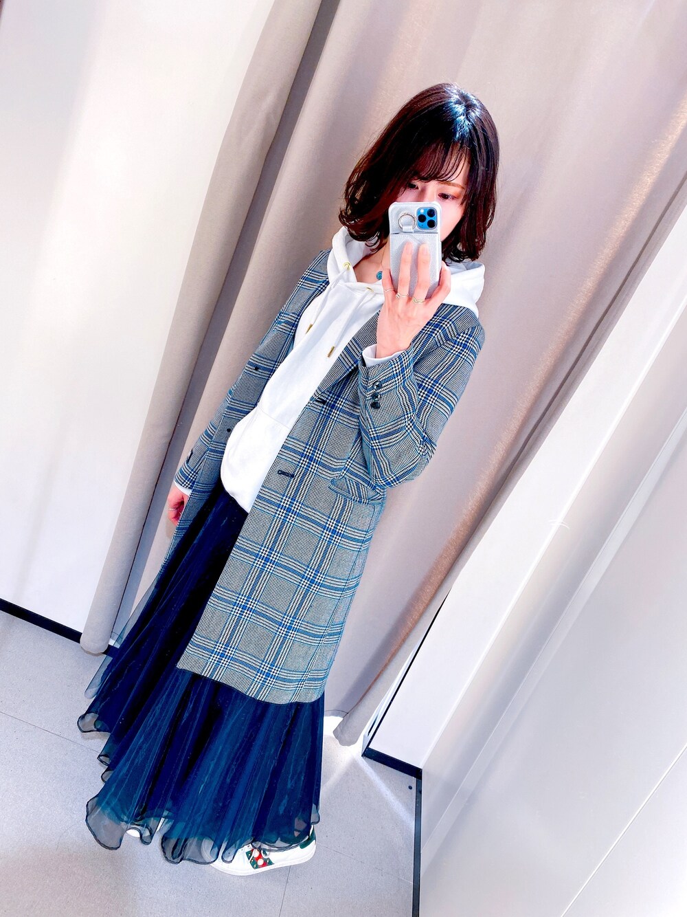 emiko.jpのチェスターコート「BEAMS LIGHTS / ダブルフェイス チェックコート」を使ったコーディネート