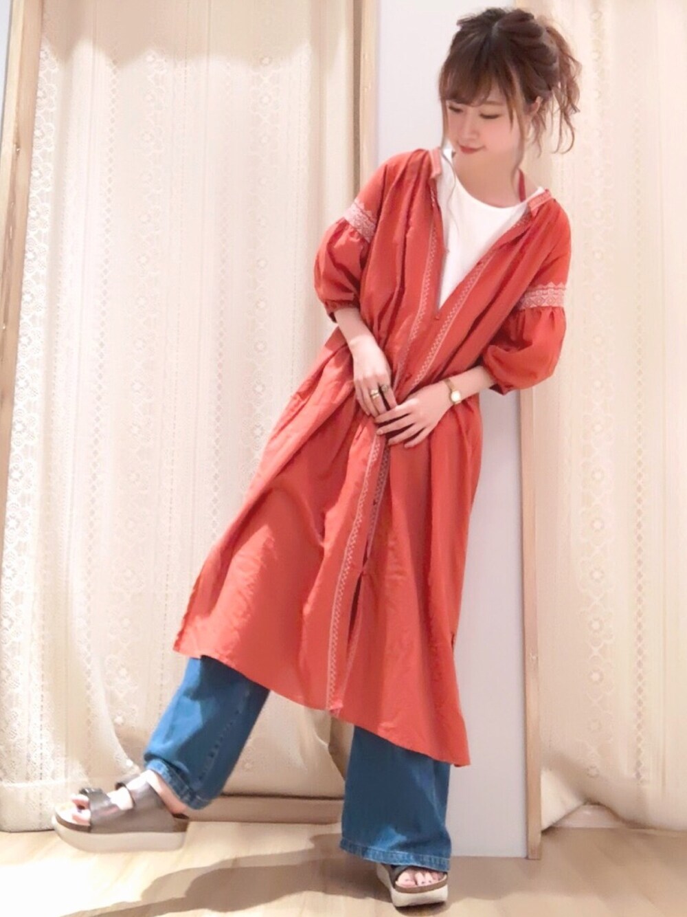 袖のボリューム、さり気ない刺繍、トレンドのテラコッタカラーが可愛すぎるワンピースはガウンとしても使える優秀アイテムです🐚