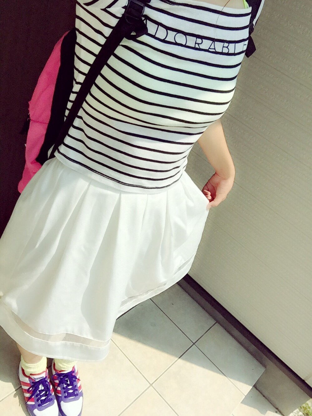 おはようございます🐼 今日は友達の家に遊びに行きます! そのあと塾に行こうと思ってます🚶 ちょっと足元がうるさいかな〜って思ったけど時間無くて家出てきちゃいました😂(笑) 基本的に白を着ることが多いです◎