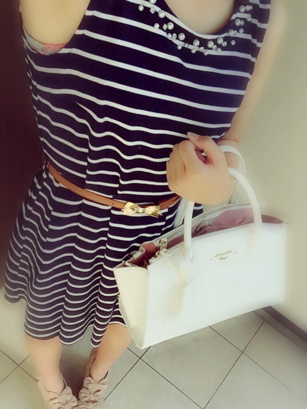 てと。のワンピース「L87装飾付ボーダー/ワンピース-2014AW-」を使ったコーディネート