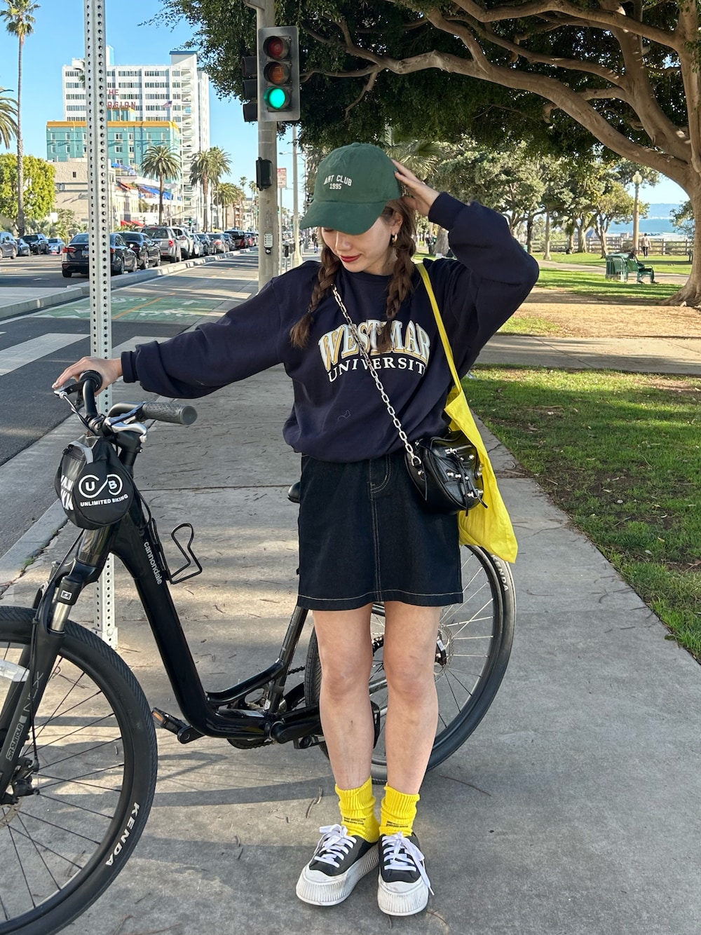 憧れのサンタモニカでサイクリングコーデ🚴♀️靴下のカラーとトートーバッグのカラーを合わせて統一感を💛
