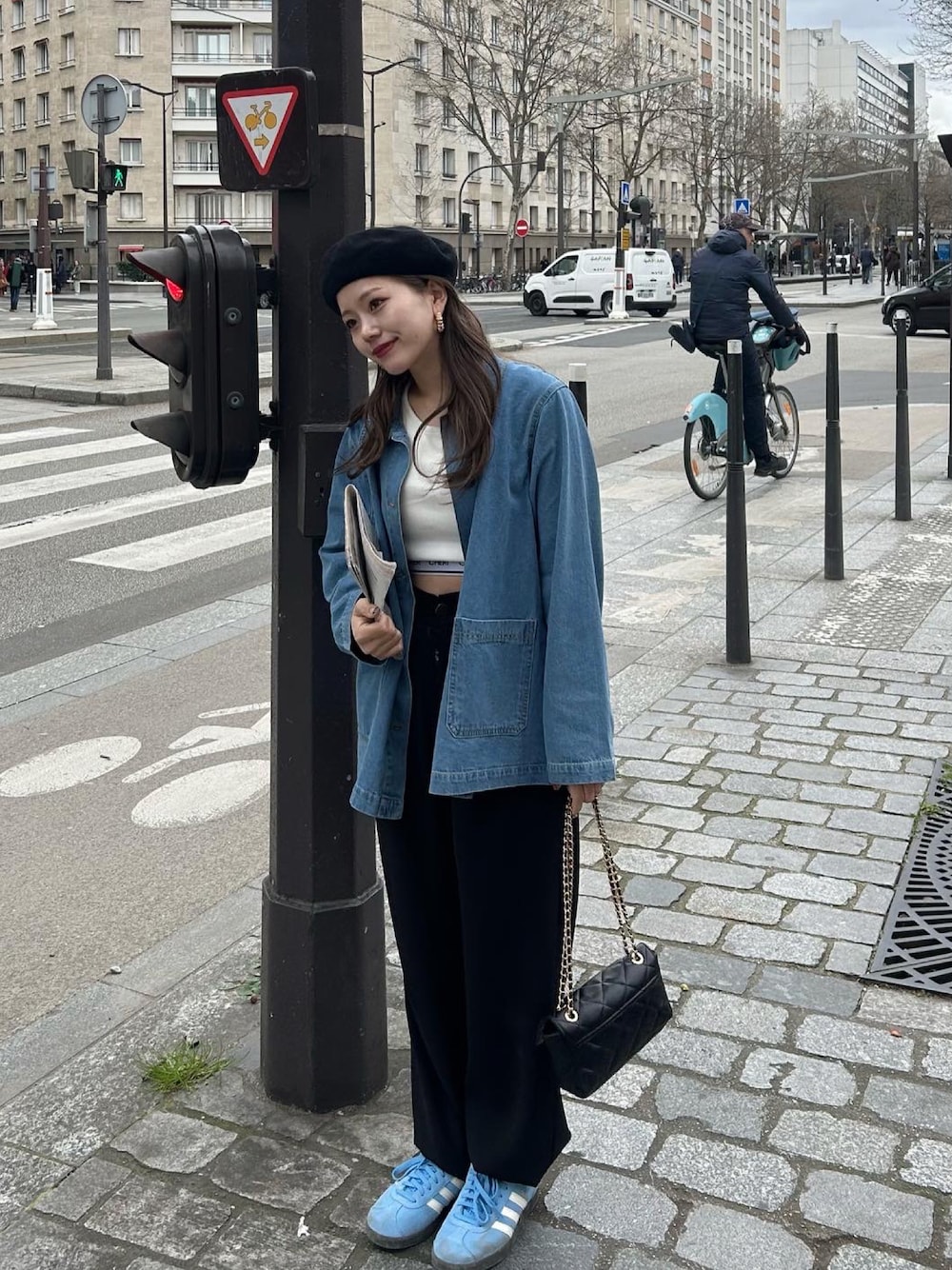 ブルーを使ったコーデ♡ スニーカーとジャケットの色味を合わせて 統一感を出しました✨