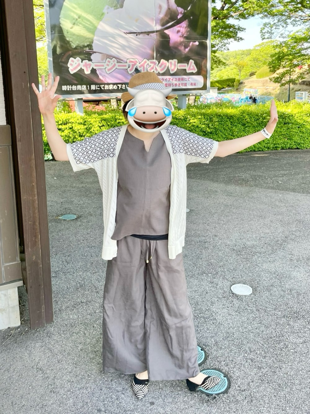 セットアップは、確かアウトレットの店舗で購入して、上下で7000円くらいじゃ無かったかなぁ?😶 背景がジャージーアイスクリームなのは、たまたまです笑