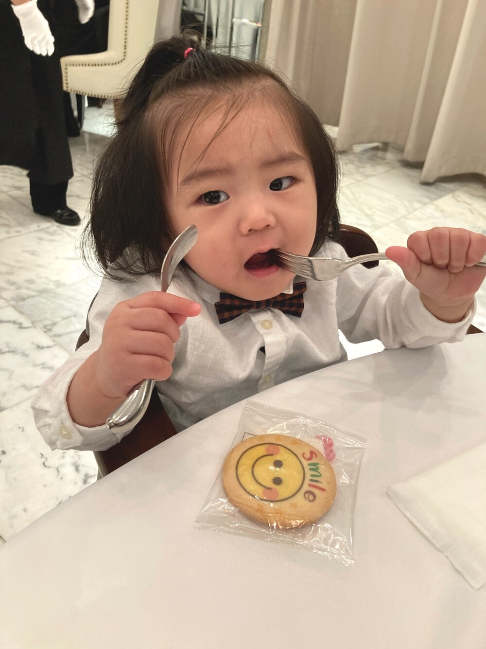 ホワイト系のフォーマルスーツ/小物を着用したキッズの冬コーディネートの1枚目の写真
