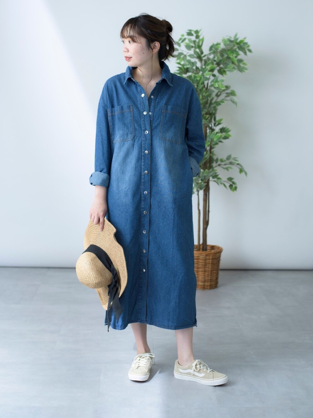 ロングシーズン着れるデニムシャツワンピース。羽織りものとしても◎