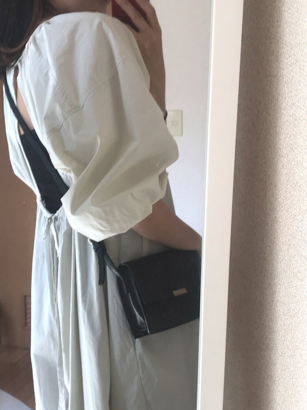 だるまのワンピース「ボリュームスリーブワンピース」を使ったコーディネート
