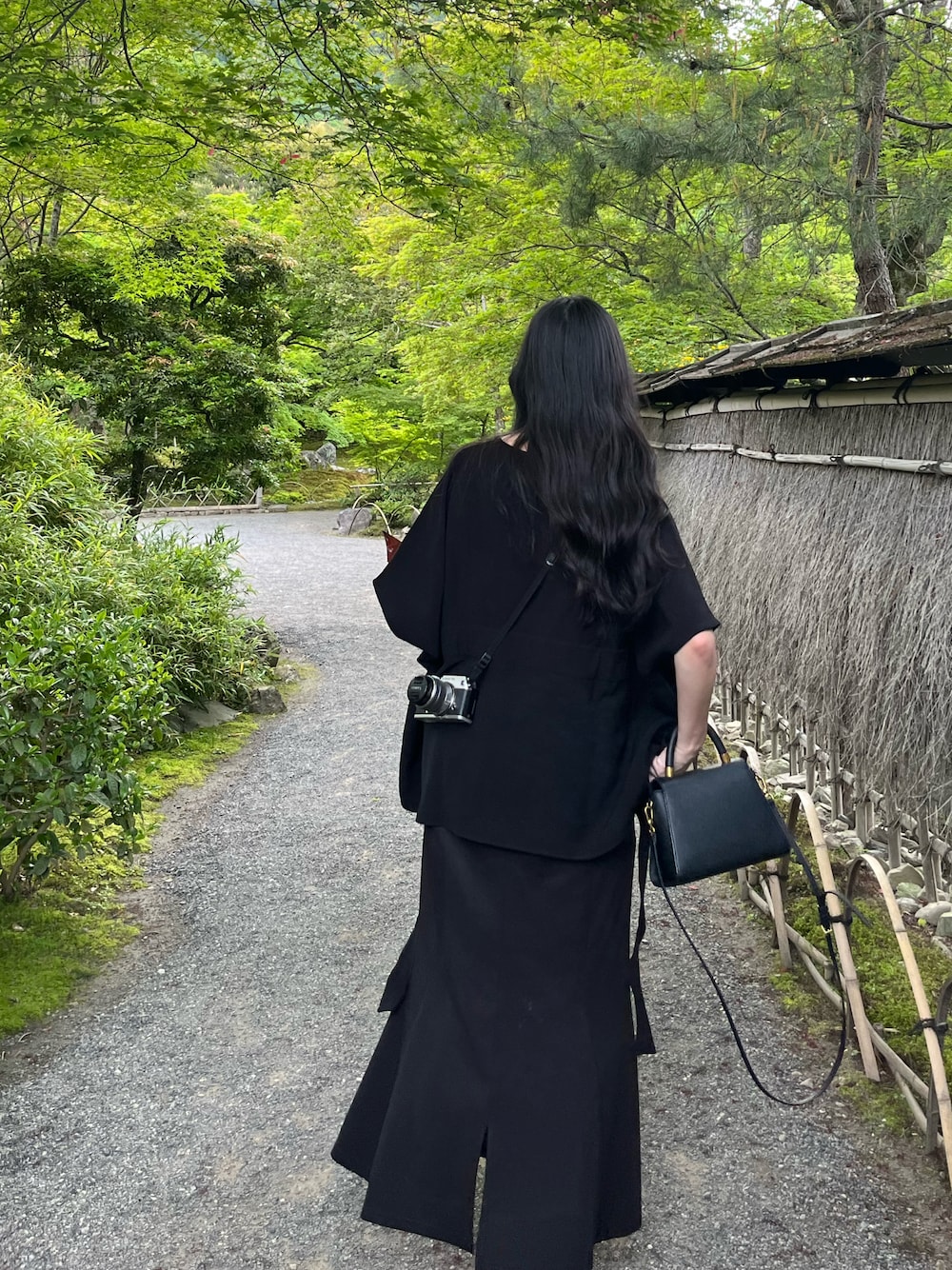 だるまのハンドバッグ「プッシュロック トラペーズトップハンドルバッグ / Push-Lock Trapeze Top Handle Bag」を使ったコーディネート