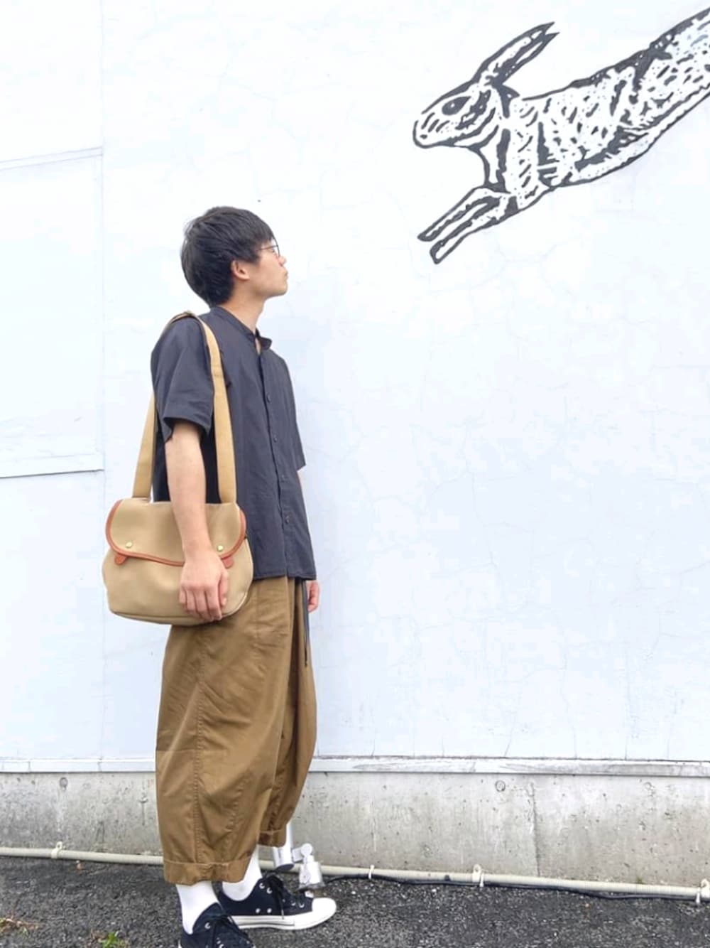 ブラック×ベージュ いつかのお気に入りコーデ。 MHLのブラックのシャツに、ベージュのブレディバッグとワイドパンツを合わせてみた◎ 足元をホワイトのソックスとスニーカーにして爽やかにしました。