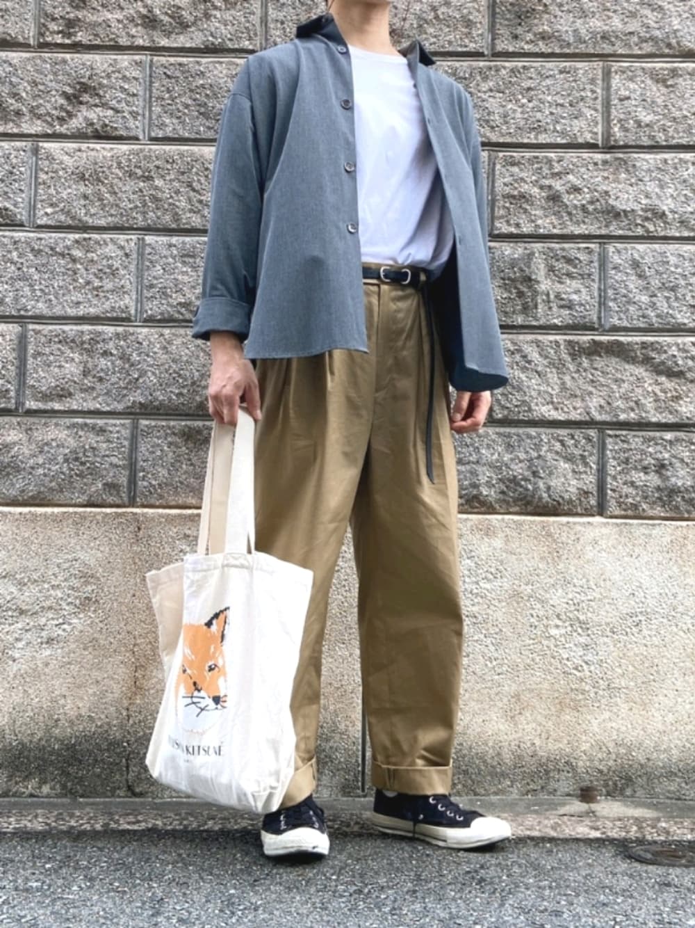 tkzaneのトートバッグ「TOTE BAG FOX HEAD」を使ったコーディネート