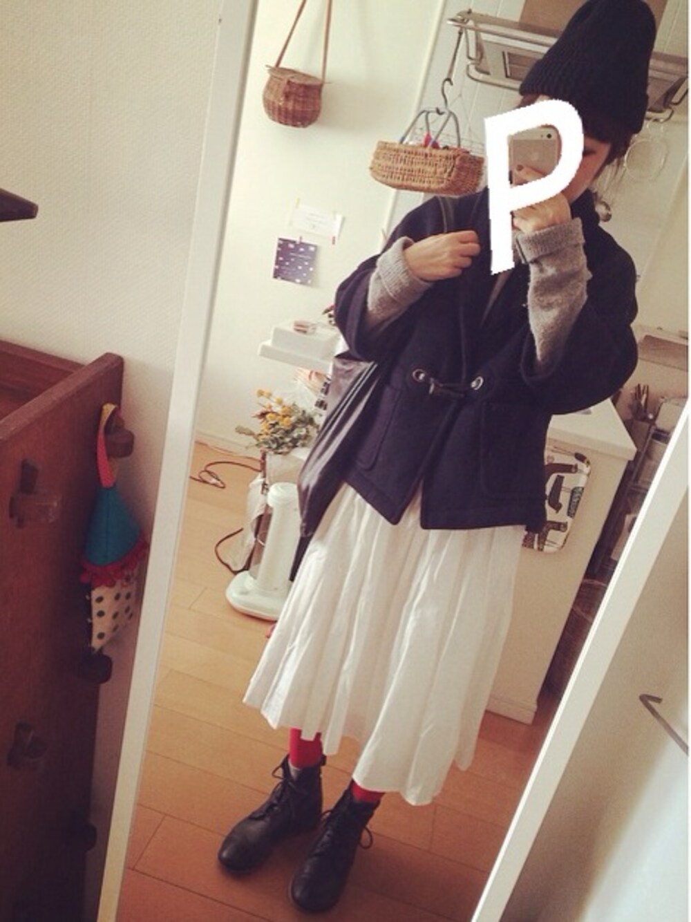 今日は赤のタイツ! ロングダッフルではなく、ショートダッフルです☻
