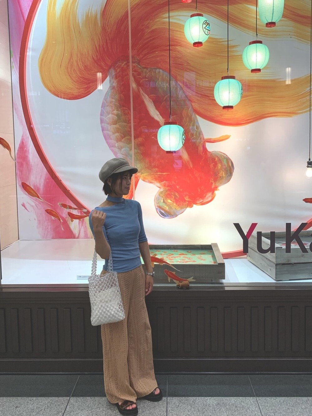 P!COのトートバッグ「ウッドビーズトート(かごバッグ)」を使ったコーディネート