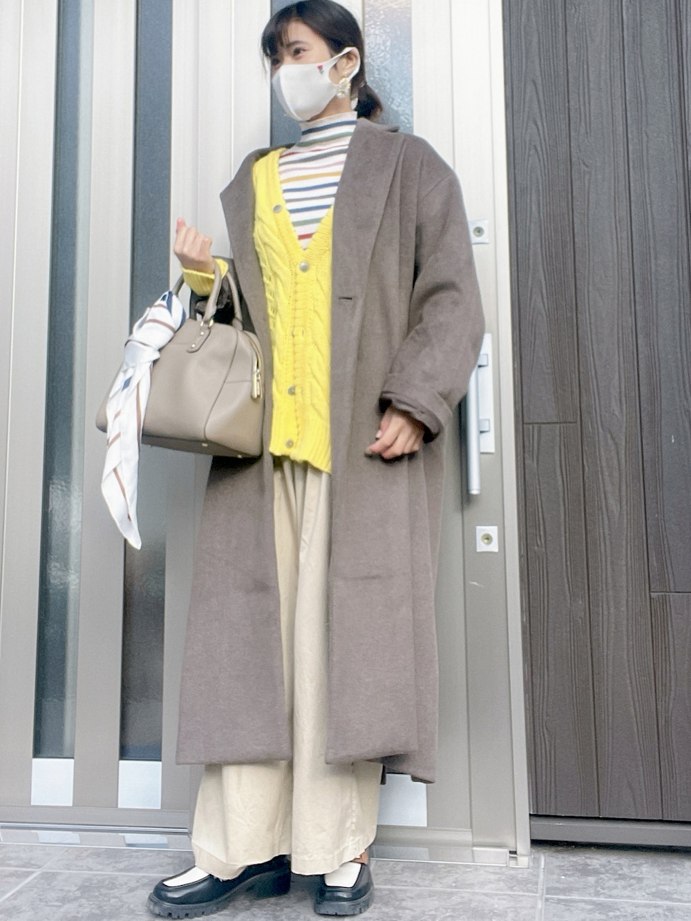 P!COのチェスターコート「起毛ルーズチェスターコート」を使ったコーディネート